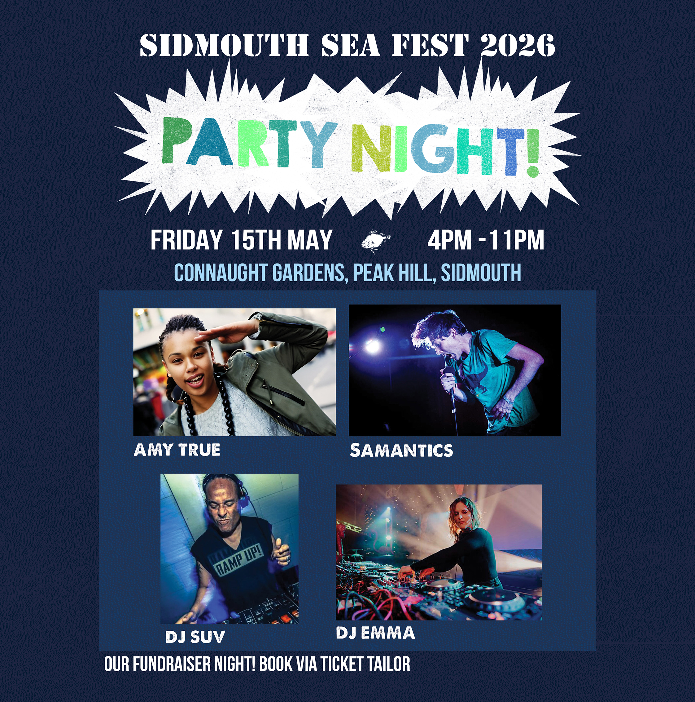 Sidmouth’s homegrown festival kicks off again Friday 15th and Saturday 16th May 2026! Returning to our new venue overlooking the sea at Connaught Gardens.